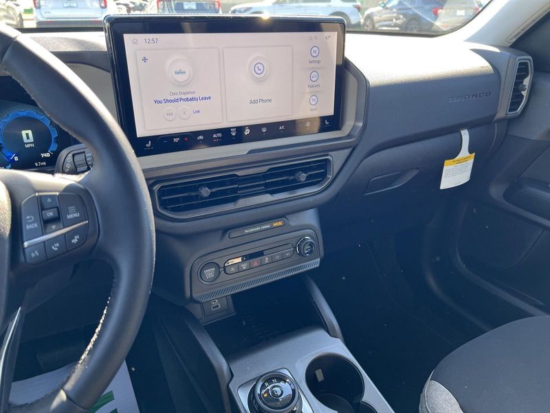 2025 Ford Bronco Sport Big Bend Ready to make a statement on the road? This 2025 Ford Bronco Sport Big Bend is priced to move and waiting for you. Convenience Package ($1,895 value) LED Fog Lamps Front Driver/passenger Seat Back Map Pockets Heated 8-Way Power Driver's Seat Premium Wrapped Steering Wheel Universal Garage Door Opener (UGDO) Equipment Group 200A 8-Speed Automatic Transmission 1.5L EcoBoost Engine Cloth with Easy-To-clean Front Bucket Seats AM/FM Stereo 225/65R17 102H All Season BSW Tires 17 Carbonized Gray-Painted Aluminum Wheel Convenience This intelligent cruise control system uses laser or radar to maintain a preset following distance behind another vehicle, automatically braking (to a complete stop if needed) or accelerating as required. Safety and Security With this system the driver's hands must remain on the wheel at all times but can be removed briefly (for a few seconds), otherwise the vehicle will prompt the driver to put their hands back on the wheel. The vehicle is equipped with a system that senses, and then prepares, the vehicle and/or occupants, for an impending forward collision. The vehicle constantly monitors the roadway in front of the vehicle and identifies and tracks pedestrians on an interior display. If the system determines a likely impact, it will automatically take preventative steps to avoid hitting the pedestrian. The vehicle is equipped with a camera that displays an image of the area behind the vehicle on an interior display. An active lane departure system alerts the driver of unintended movement of the vehicle out of a designated traffic lane and automatically maintains the vehicle's position within that lane. The vehicle is equipped with a system that senses, and then prepares, the vehicle and/or occupants, for an impending rear collision. Technology and Telematics SYNC 4 AppLink/Apple CarPlay/Android Auto smart device wireless mirroring This vehicle is priced to move. Drive home today in your new vehicle, with the Greenway experience. Our family run business prides ourselves on providing exceptional value and a hassle-free buying experience. To be sure you don't miss out, give us a call and schedule a test drive. We are located at 300 West Bedford Road Morris IL 60450 - (815) 942-3400. WE LOOK FORWARD TO SEEING YOU SOON! Despite our best efforts to ensure the accuracy of the information on this site, we cannot guarantee complete accuracy. The site and all information and materials provided are offered to users as is without any kind of warranty, either express or implied. All vehicles are subject to prior sale. The listed price does not include applicable taxes, title fees, and a documentation fee of $367.70.