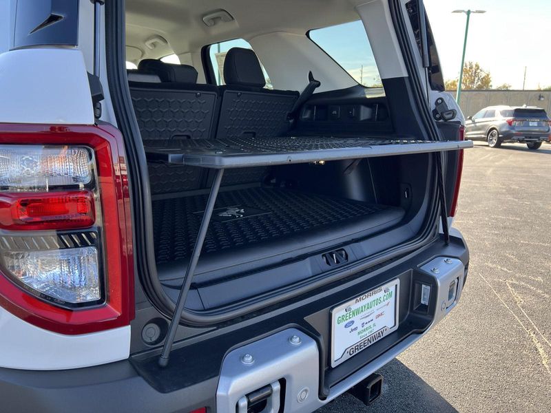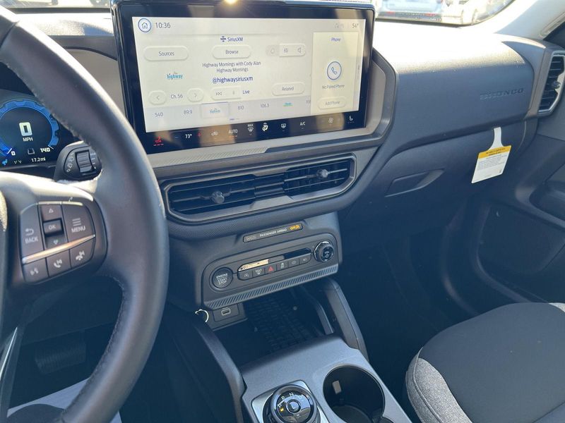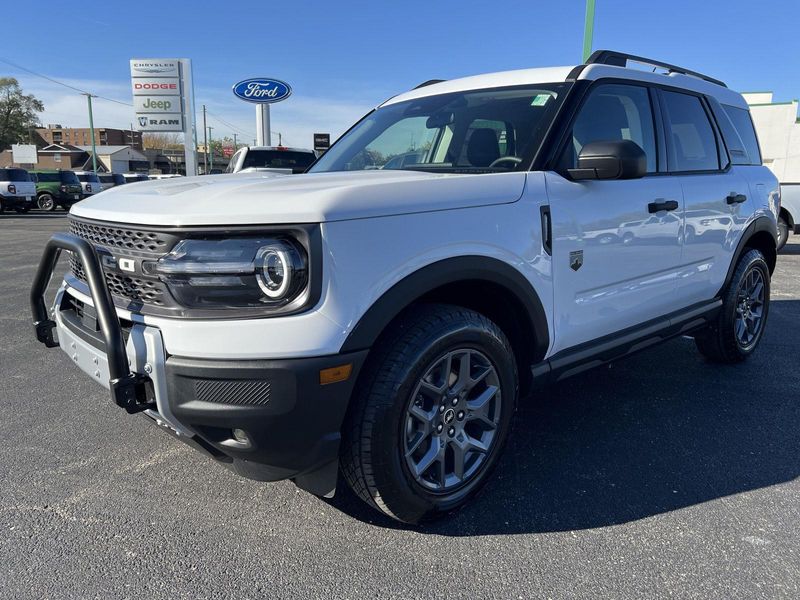 2025 Ford Bronco Sport Big Bend Ready to make a statement on the road? This 2025 Ford Bronco Sport Big Bend is priced to move and waiting for you. Convenience Package ($1,895 value) LED Fog Lamps Front Driver/passenger Seat Back Map Pockets Heated 8-Way Power Driver's Seat Premium Wrapped Steering Wheel Universal Garage Door Opener (UGDO) Black Diamond Off-Road Package ($1,820 value) 110V/400W AC Power Outlet Cargo Mat Class II Trailer Tow Package with Trailer Sway Control 17 Carbonized Gray Painted Aluminum Wheels 2nd Row Carpeted Seatback Auxiliary Switches and Wiring Brush Guard Underbody Protection Cargo Management System (shelf/divider/table) Front and Rear Black Bumpers Fender Tie Downs Interior Grab Handle Recovery Hooks 225/65R17 All-Terrain Tires Equipment Group 200A 8-Speed Automatic Transmission 1.5L EcoBoost Engine Cloth with Easy-To-clean Front Bucket Seats AM/FM Stereo Convenience This intelligent cruise control system uses laser or radar to maintain a preset following distance behind another vehicle, automatically braking (to a complete stop if needed) or accelerating as required. Safety and Security With this system the driver's hands must remain on the wheel at all times but can be removed briefly (for a few seconds), otherwise the vehicle will prompt the driver to put their hands back on the wheel. The vehicle is equipped with a system that senses, and then prepares, the vehicle and/or occupants, for an impending forward collision. The vehicle constantly monitors the roadway in front of the vehicle and identifies and tracks pedestrians on an interior display. If the system determines a likely impact, it will automatically take preventative steps to avoid hitting the pedestrian. The vehicle is equipped with a camera that displays an image of the area behind the vehicle on an interior display. An active lane departure system alerts the driver of unintended movement of the vehicle out of a designated traffic lane and automatically maintains the vehicle's position within that lane. The vehicle is equipped with a system that senses, and then prepares, the vehicle and/or occupants, for an impending rear collision. Technology and Telematics SYNC 4 AppLink/Apple CarPlay/Android Auto smart device wireless mirroring This vehicle is priced to move. Drive home today in your new vehicle, with the Greenway experience. Our family run business prides ourselves on providing exceptional value and a hassle-free buying experience. To be sure you don't miss out, give us a call and schedule a test drive. We are located at 300 West Bedford Road Morris IL 60450 - (815) 942-3400. WE LOOK FORWARD TO SEEING YOU SOON! Despite our best efforts to ensure the accuracy of the information on this site, we cannot guarantee complete accuracy. The site and all information and materials provided are offered to users as is without any kind of warranty, either express or implied. All vehicles are subject to prior sale. The listed price does not include applicable taxes, title fees, and a documentation fee of $367.70.
