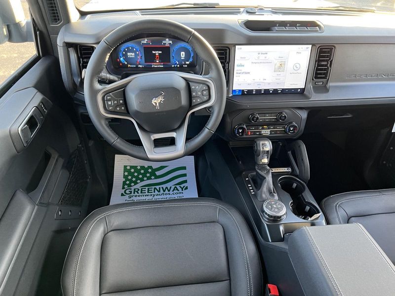2025 Ford Bronco Big Bend Ready to make a statement on the road? This 2025 Ford Bronco Big Bend is priced to move and waiting for you. Equipment Group 222A Mid Package ($1,540 value) 2.3L EcoBoost I-4 Engine Ambient Footwell Lighting 2-Door Intelligent Access with Lock/unlock Connected Navigation Dual-Zone Electronic Automatic Temperature Control Front Row Heated Seats Driver and Front Passenger Illuminated Sliding Visor Vanity Mirrors Power Outlet - Back Side of Center Floor Console Remote Start System Rear Parking Sensors AM/FM Stereo Dual Smart Charging USB Ports Ford Co-Pilot360 Auto High-Beam Headlamps Blind Spot Information System (BLIS) Lane-Keeping System Pre-Collision Assist with Automatic Emergency Braking Rear View Camera Black Diamond Package ($4,495 value) Auxiliary Switches Powder Coated Steel Front and Rear Bumpers LED Fog Lamps LT265/70R17 All-Terrain Tires 17 Black High Gloss Painted Aluminum Wheels Rock Rails Washout Capable Rubberized Flooring Full Vehicle Steel Bash Plates 4.46 Final Drive Ratio with Rear Locking Differential Convenience Cruise control maintains a preset vehicle speed automatically increasing or decreasing throttle to maintain that speed. Safety and Security The vehicle is equipped with a system that senses, and then prepares, the vehicle and/or occupants, for an impending forward collision. The vehicle constantly monitors the roadway in front of the vehicle and identifies and tracks pedestrians on an interior display. If the system determines a likely impact, it will automatically take preventative steps to avoid hitting the pedestrian. The vehicle is equipped with a camera that displays an image of the area behind the vehicle on an interior display. An active lane departure system alerts the driver of unintended movement of the vehicle out of a designated traffic lane and automatically maintains the vehicle's position within that lane. The vehicle is equipped with sensors which compare vehicle speed to available distance to the vehicle ahead. If the speed exceeds the required distance to stop before colliding with the vehicle ahead, the brakes are automatically readied for maximum braking force once the driver applies the brakes. Technology and Telematics SYNC 4 AppLink/Apple CarPlay/Android Auto smart device wireless mirroring Mobile devices can wirelessly connect to the internet through the vehicle's private mobile network. ENGINE: 2.3L ECOBOOST I-4, OXFORD WHITE This vehicle is priced to move. Drive home today in your new vehicle, with the Greenway experience. Our family run business prides ourselves on providing exceptional value and a hassle-free buying experience. To be sure you don't miss out, give us a call and schedule a test drive. We are located at 300 West Bedford Road Morris IL 60450 - (815) 942-3400. WE LOOK FORWARD TO SEEING YOU SOON! Despite our best efforts to ensure the accuracy of the information on this site, we cannot guarantee complete accuracy. The site and all information and materials provided are offered to users as is without any kind of warranty, either express or implied. All vehicles are subject to prior sale. The listed price does not include applicable taxes, title fees, and a documentation fee of $367.70.