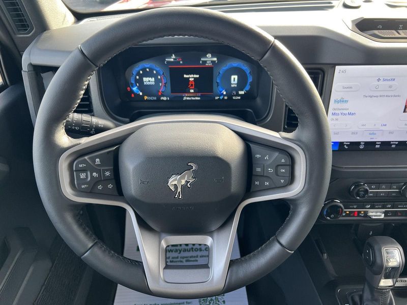 2025 FORD BRONCO BADLAND Ready to make a statement on the road? This 2025 FORD BRONCO BADLAND is priced to move and waiting for you. Black Appearance Package Equipment Group 334A Lux Package ($4,500 value) 360-Degree Camera Ambient Footwell Lighting 2-Door Intelligent Access with Lock/unlock Connected Navigation Adaptive Cruise Control Dual-Zone Electronic Automatic Temperature Control Evasive Steering Assist Front Parking Sensors Front Row Heated Seats Driver and Front Passenger Illuminated Sliding Visor Vanity Mirrors Information on Demand Panel B O Sound System by Bang and Olufsen Power Outlet - Back Side of Center Floor Console Remote Start System Rear Parking Sensors Sideview Mirrors LT285/70R17 A/T Tires 17 Carbonized Gray-Painted Aluminum Wheel Universal Garage Door Opener Dual Smart Charging USB Ports Ford Co-Pilot360 Auto High-Beam Headlamps Blind Spot Information System (BLIS) Lane-Keeping System Pre-Collision Assist with Automatic Emergency Braking Rear View Camera Convenience Cruise control maintains a preset vehicle speed automatically increasing or decreasing throttle to maintain that speed. Safety and Security The vehicle is equipped with a system that senses, and then prepares, the vehicle and/or occupants, for an impending forward collision. The vehicle constantly monitors the roadway in front of the vehicle and identifies and tracks pedestrians on an interior display. If the system determines a likely impact, it will automatically take preventative steps to avoid hitting the pedestrian. The vehicle is equipped with a camera that displays an image of the area behind the vehicle on an interior display. An active lane departure system alerts the driver of unintended movement of the vehicle out of a designated traffic lane and automatically maintains the vehicle's position within that lane. The vehicle is equipped with sensors which compare vehicle speed to available distance to the vehicle ahead. If the speed exceeds the required distance to stop before colliding with the vehicle ahead, the brakes are automatically readied for maximum braking force once the driver applies the brakes. Technology and Telematics SYNC 4 AppLink/Apple CarPlay/Android Auto smart device wireless mirroring Mobile devices can wirelessly connect to the internet through the vehicle's private mobile network. This vehicle is priced to move. Drive home today in your new vehicle, with the Greenway experience. Our family run business prides ourselves on providing exceptional value and a hassle-free buying experience. To be sure you don't miss out, give us a call and schedule a test drive. We are located at 300 West Bedford Road Morris IL 60450 - (815) 942-3400. WE LOOK FORWARD TO SEEING YOU SOON! Despite our best efforts to ensure the accuracy of the information on this site, we cannot guarantee complete accuracy. The site and all information and materials provided are offered to users as is without any kind of warranty, either express or implied. All vehicles are subject to prior sale. The listed price does not include applicable taxes, title fees, and a documentation fee of $367.70.