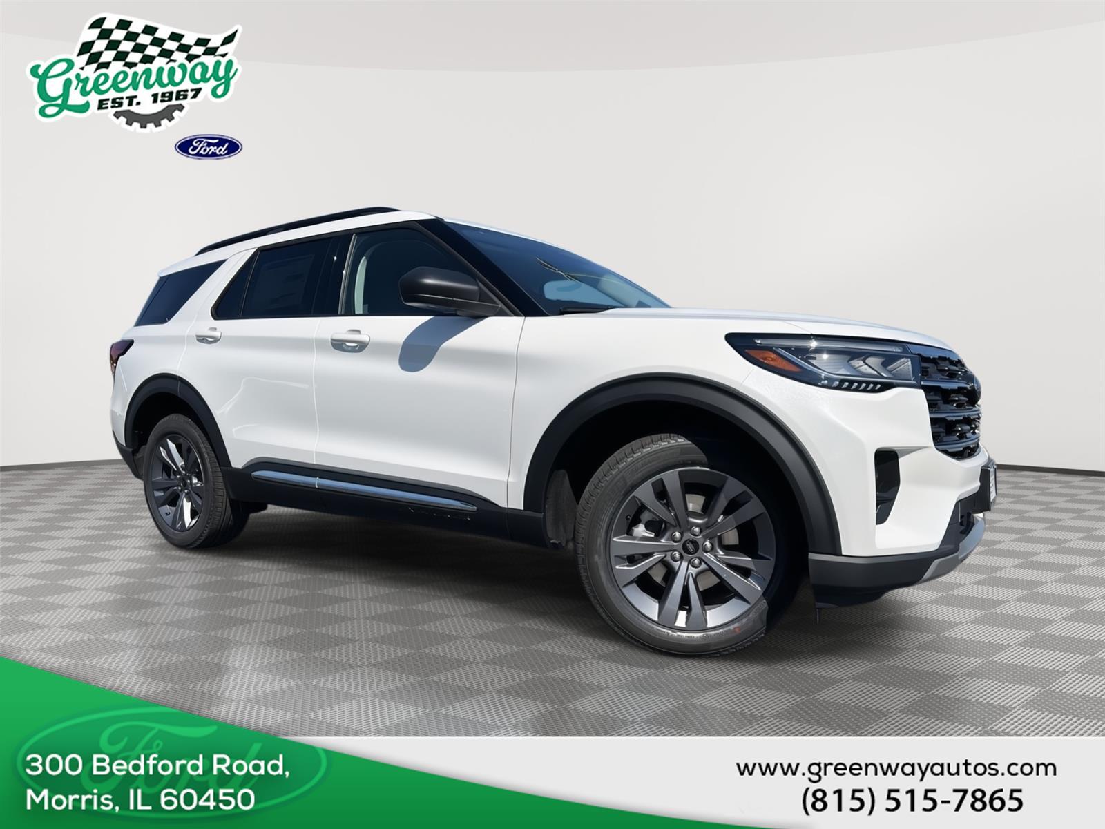 2025 Ford Explorer Active Ready to make a statement on the road? This 2025 Ford Explorer Active is priced to move and waiting for you. Active Comfort Package ($3,520 value) Second Row Hvac Controls Front Fascia Heated Steering Wheel Remote Start System Heated ActiveX Seating Material Captain's Chairs Universal Garage Door Opener (UGDO) Equipment Group 200A Standard Package 10-Speed Automatic Transmission 2.3L EcoBoost I-4 Engine 3.58 Non-Limited Slip Rear Axle AM/FM Stereo Safety and Security With this system the driver's hands must remain on the wheel at all times but can be removed briefly (for a few seconds), otherwise the vehicle will prompt the driver to put their hands back on the wheel. The vehicle constantly monitors the roadway in front of the vehicle and identifies and tracks pedestrians on an interior display. If the system determines a likely impact, it will automatically take preventative steps to avoid hitting the pedestrian. The vehicle is equipped with a system that senses, and then prepares, the vehicle and/or occupants, for an impending forward collision. The vehicle is equipped with a camera that displays an image of the area behind the vehicle on an interior display. The camera is equipped with its own washer. The vehicle is equipped with a system that senses, and then prepares, the vehicle and/or occupants, for an impending rear collision. An active lane departure system alerts the driver of unintended movement of the vehicle out of a designated traffic lane and automatically maintains the vehicle's position within that lane. Technology and Telematics Apple CarPlay/Android Auto smart device wireless mirroring Mobile devices can wirelessly connect to the internet through the vehicle's private mobile network. This vehicle is priced to move. Drive home today in your new vehicle, with the Greenway experience. Our family run business prides ourselves on providing exceptional value and a hassle-free buying experience. To be sure you don't miss out, give us a call and schedule a test drive. We are located at 300 West Bedford Road Morris IL 60450 - (815) 942-3400. WE LOOK FORWARD TO SEEING YOU SOON! Despite our best efforts to ensure the accuracy of the information on this site, we cannot guarantee complete accuracy. The site and all information and materials provided are offered to users as is without any kind of warranty, either express or implied. All vehicles are subject to prior sale. The listed price does not include applicable taxes, title fees, and a documentation fee of $367.70.