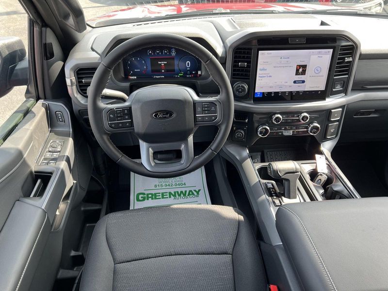 2025 Ford F-150 XLT Ready to make a statement on the road? This 2025 Ford F-150 XLT is priced to move and waiting for you. XLT Black Appearance Package ($595 value) Body-Color Front and Rear Bumpers Black Exterior Badging Black Grille Dark Interior Appliques Gray Box Side Decal Unique Sport Cloth 40/console/40 Front-Seats Floor Shifter 18 Gloss Black Wheels 6 Black Running Boards Equipment Group 302A Mid ($5,440 value) Chrome Door and Tailgate Handles Chrome Single-Tip Exhaust Ford Co-Pilot360 Assist 2.0 Dual-Zone Electronic Automatic Temperature Control Black Painted Grille with Chrome Center Bar Heated Front Seats Connected Navigation 400W Cab and Bed Outlets Intelligent Access with Push Button Start Power Glass Heated Sideview Mirrors Remote Start System with Remote Tailgate Release Power-Sliding Rear Window AM/FM Stereo with SiriusXM 360L 275/65R18 BSW A/T Tires 6 Angular Bright Anodized Step Bar Wrapped Steering Wheel Mobile Office Package ($555 value) Console Worksurface Partitioned Lockable Rear Storage Wireless Charging Tow/haul Package ($275 value) Integrated Trailer Brake Controller Electronic Locking with 3.73 Axle Ratio Convenience The cruise control accesses camera, radar and/or GPS satellite data, to automatically determine if it should slow for a curve in the road ahead. If the vehicle detects prolonged driver unresponsiveness it will automatically bring the vehicle to a stop and turn on the hazard lights. If equipped, emergency services will be contacted. Safety and Security With this system the driver's hands must remain on the wheel at all times but can be removed briefly (for a few seconds), otherwise the vehicle will prompt the driver to put their hands back on the wheel. The vehicle constantly monitors the roadway in front of the vehicle and identifies and tracks pedestrians on an interior display. If the system determines a likely impact, it will automatically take preventative steps to avoid hitting the pedestrian. The vehicle is equipped with a camera that displays an image of the area behind the vehicle on an interior display. An active lane departure system alerts the driver of unintended movement of the vehicle out of a designated traffic lane and automatically maintains the vehicle's position within that lane. Technology and Telematics SYNC 4 AppLink/Apple CarPlay/Android Auto smart device wireless mirroring Mobile devices can wirelessly connect to the internet through the vehicle's private mobile network. This vehicle is priced to move. Drive home today in your new vehicle, with the Greenway experience. Our family run business prides ourselves on providing exceptional value and a hassle-free buying experience. To be sure you don't miss out, give us a call and schedule a test drive. We are located at 300 West Bedford Road Morris IL 60450 - (815) 942-3400. WE LOOK FORWARD TO SEEING YOU SOON! Despite our best efforts to ensure the accuracy of the information on this site, we cannot guarantee complete accuracy. The site and all information and materials provided are offered to users as is without any kind of warranty, either express or implied. All vehicles are subject to prior sale. The listed price does not include applicable taxes, title fees, and a documentation fee of $367.70.