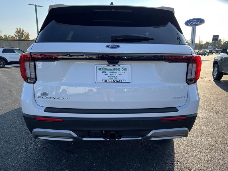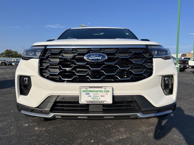 2026 Ford Explorer Platinum Ready to make a statement on the road? This 2026 Ford Explorer Platinum is priced to move and waiting for you. Equipment Group 600A Standard Package 10-Speed Automatic Transmission 20 Luster Nickel-Painted Aluminum Wheels 2.3L EcoBoost I-4 Engine ActiveX Trimmed Captain's Chairs B O Sound System by Bang Olufsen with HD Radio P255/55R20 AS BSW Tires Convenience The cruise control accesses camera, radar and/or GPS satellite data, to automatically determine if it should slow for a curve in the road ahead. If the vehicle detects prolonged driver unresponsiveness it will automatically bring the vehicle to a stop and turn on the hazard lights. If equipped, emergency services will be contacted. Safety and Security The vehicle constantly monitors the roadway in front of the vehicle and identifies and tracks pedestrians on an interior display. If the system determines a likely impact, it will automatically take preventative steps to avoid hitting the pedestrian. The vehicle is equipped with a camera that displays an image of the area behind the vehicle on an interior display. The camera is equipped with its own washer. An active lane departure system alerts the driver of unintended movement of the vehicle out of a designated traffic lane and automatically maintains the vehicle's position within that lane. The vehicle is equipped with a system that senses, and then prepares, the vehicle and/or occupants, for an impending rear collision. Technology and Telematics Apple CarPlay/Android Auto smart device wireless mirroring Mobile devices can wirelessly connect to the internet through the vehicle's private mobile network. This vehicle is priced to move. Drive home today in your new vehicle, with the Greenway experience. Our family run business prides ourselves on providing exceptional value and a hassle-free buying experience. To be sure you don't miss out, give us a call and schedule a test drive. We are located at 300 West Bedford Road Morris IL 60450 - (815) 942-3400. WE LOOK FORWARD TO SEEING YOU SOON! Despite our best efforts to ensure the accuracy of the information on this site, we cannot guarantee complete accuracy. The site and all information and materials provided are offered to users as is without any kind of warranty, either express or implied. All vehicles are subject to prior sale. The listed price does not include applicable taxes, title fees, and a documentation fee of $367.70.