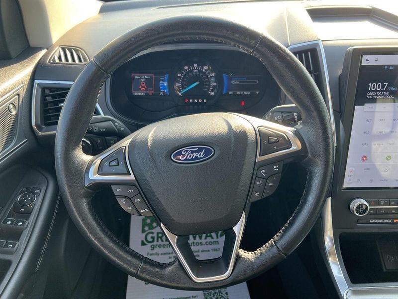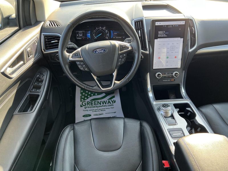This 2022 Ford Edge Titanium , has a Iconic Silver Metallic exterior and an interior color. 59,211 miles. Stock Number FE09550. You can connect with us by calling 815-942-3400. One Owner! Ready to make a statement on the road? This 2022 Ford Edge Titanium is priced to move and waiting for you. OTHER NOTABLE FEATURES AND OPTIONS YOU SHOULD KNOW ABOUT: Safety and Security The vehicle is equipped with a system that senses, and then prepares, the vehicle and/or occupants, for an impending forward collision. The vehicle constantly monitors the roadway in front of the vehicle and identifies and tracks pedestrians on an interior display. If the system determines a likely impact, it will automatically take preventative steps to avoid hitting the pedestrian. The vehicle is equipped with a camera that displays an image of the area behind the vehicle on an interior display. The camera is equipped with its own washer. An active lane departure system alerts the driver of unintended movement of the vehicle out of a designated traffic lane and automatically maintains the vehicle's position within that lane. The vehicle is equipped with sensors which compare vehicle speed to available distance to the vehicle ahead. If the speed exceeds the required distance to stop before colliding with the vehicle ahead, the brakes are automatically readied for maximum braking force once the driver applies the brakes. The vehicle is equipped with sensors which compare vehicle speed to available distance to the vehicle ahead. If the speed exceeds the required distance to stop before colliding with the vehicle ahead, the brakes are automatically readied for maximum braking force once the driver applies the brakes. Technology and Telematics Without the need for a manufacturer specific app to be installed on the smart device, the vehicle infotainment system can access and control functions of a smart device physically plugged-into the vehicle. Mobile devices can wirelessly connect to the internet through the vehicle's private mobile network. This vehicle is priced to move. Drive home today in your new vehicle, with the Greenway experience. Our family run business prides ourselves on providing exceptional value and a hassle-free buying experience. To be sure you don't miss out, give us a call and schedule a test drive. We are located at 300 West Bedford Road Morris IL 60450 - (815) 942-3400. WE LOOK FORWARD TO SEEING YOU SOON! Despite our best efforts to ensure the accuracy of the information on this site, we cannot guarantee complete accuracy. The site and all information and materials provided are offered to users as is without any kind of warranty, either express or implied. All vehicles are subject to prior sale. The listed price does not include applicable taxes, title fees, and a documentation fee of $367.70. Greenway Ford CDJR serves Morris, Naperville, Joliet, Plainfield, Shorewood, Ottawa, Channahon, Minooka, Marseilles, Dwight and Oswego.